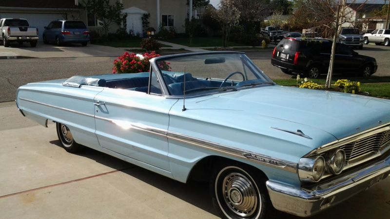 Now back to how I got to drive this beauty. My mom who I lost in 2000 has a great older brother who is my uncle and who is a car guy. We were talking one day about cars and he mentioned a '64 Galaxie. I had no idea I could ever feel the way I felt that day about a beat up old car. This is truly a car my mom would love and when I drive I can hear her say, "Now that's a car." This is my first old car and I have to say, wow I sure missed the boat on waiting this long but now I drive that boat. I live in Ronald Reagan land and don't run across to many, so far, Galaxie cars. The looks I get on a weekend makes me feel a bit weird but I am getting better at accepting the looks. This car has truly been the best car I have ever bought and it came out of a barn not a show room. I wanted to share this looker with you as it was also mentioned in the last mailing to share. I hope you enjoy pictures of my Blue La Bamba as much as I enjoy the cars I have seen in the MAGAZINE. Now I just need to keep moving it so the wife does not find out. :-) Cheers to all. Built to last Ford Strong.
