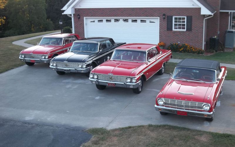 After seeing the car on Friday, I knew I had to have it some way or another. But the question was "How?" I got home as fast as I could in a Chevrolet to talk to my mother about buying this car. At that time, you could not have a car in your name in North Carolina unless you were 21 years of age. I was only 18. After talking to Mama, we went to the dealership the next morning which was August 21, 1965. We asked the salesman if we could take it for a test drive and he agreed and handed me the keys with the stipulation that Mama had to go with me as co-pilot. We went to a very steep hill to try it out. This was a popular place where most everyone went to try out a car. This practice was referred to as "seeing how fast it would go from the 105 Bypass to the Hilltop Drive-In." At that time, my Mama was 61 years old. When I turned the car loose up the mountain, I turned to her and said, "I am going to run it real hard to make sure the motor is in good condition." We smoked the tires in first gear, burned rubber in second, and by then we were at the top of the mountain. When we crossed the top of the mountain running over 100mph, Mama looked at me and said, "If the motor was no good, it would be laying in the road back behind us. We would never have made it to the top." We went back to the dealer to finalize a deal. I traded a 1955 Chevrolet with a 265V8 Engine, manual transmission, 3 speed on the column and $1400.00 for the 1962 Ford Galaxie. It was the best trade I ever made. I have owned this car now for 53 years. If cars could talk, I wouldn't be in jail, I would be under it! The older picture included with this article was taken in 1966 just before I received my invitation from Uncle Sam to spend the next 2 years in the Army. One of these years was spent in Vietnam. My wife drove the car back and forth to work during my time in Vietnam. When I returned to the States, I was stationed at Fort Benning, Georgia. At that time, my wife was able to join me. After I completed my 2 years in the Army, we returned to North Carolina. When we came home from Fort Benning, we had everything we owned in the back seat and trunk of this Galaxie with the exception of a washing machine that had been stored at her mother's house. We both returned to civilian jobs while keeping the Galaxie. I worked in the electronic industry and my wife worked in insurance. I was always tinkering with the car with every spare minute trying to get one more horsepower. In 1969, I was running from the law when I wrecked the car for the first time. I went for a short visit with the Sheriff and was given a ticket for running a red light (which I did not do), speeding, reckless driving, driving on the wrong side of the road, failure to stop for a flashing light and attempting to evade arrest. When I went to court, all charges were dropped except running a red light which was the only thing I did not do. The law works in funny ways sometimes, but I am glad it did in this case. Everything went along good for several years with me and the car. In July of 1970, my wife was expecting our child. We were at my mother's house and I was out in the garage tinkering with the car when my wife went into labor. I am glad to say that she delivered a healthy 6 pound girl who has been the joy of our lives. Once again, in 1974 I was racing against a co-worker and while in the process of passing him on a hill that had a blind spot in it, I met a car and had to leave the road in order to avoid a collision. I hit an embankment going about 110mph and bounced off the bank several times. Needless to say, the front end and driver's side were gone from the Galaxie. Somehow I again escaped unharmed. I worked on it for about 4 months to get it back on the road and it is still running today. I lovingly restored Big Red and he holds a special place of honor in our family. The car is no longer raced and enjoys a well-deserved and peaceful retirement. At the present time, we have 2 other 1962 Ford Galaxie 500s which I have restored. Both of these cars are 406 cubic inch hi-performance. One is Black and the other one is identical to the one in this article and is Rangoon Red. My daughter has a Rangoon Red 1963 Ford Falcon Sprint Convertible. We are a Ford family for sure! All I can say is that I am proud to be a Ford owner.